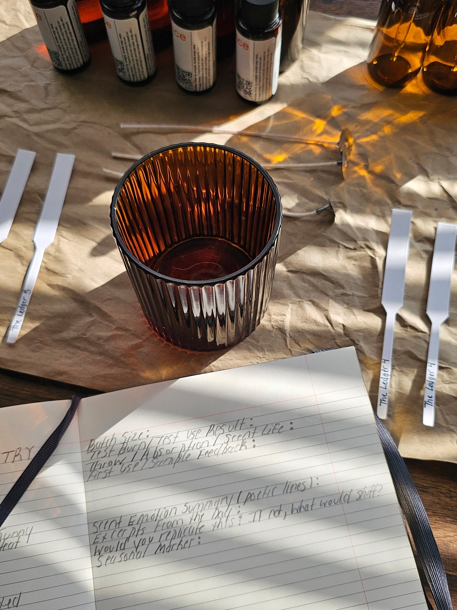 Before any vessel is filled, we record the batch number, pour date, and atmospheric condition in The Ledger of Inheritance — a living document where every blend, temperature, and wick size is archived by hand.
